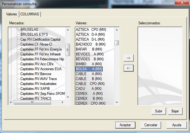 Tip: You can choose the assets in section "Renta Variable/Capitales RV. Indrustriales".
