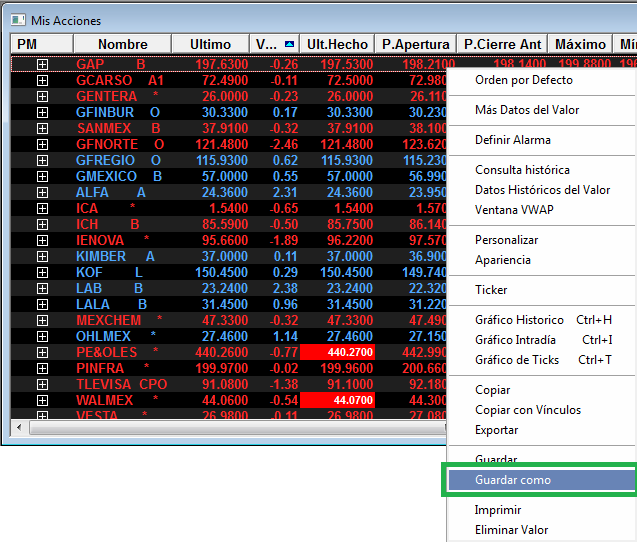 Un grupo es un listado de emisoras, o valores, en el que se pueden configurar las columnas.