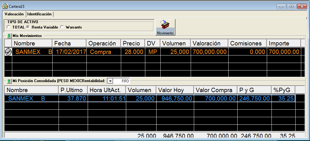 Tip: Las acciones las puedes localizar, en la sección "Renta Variable/Capitales RV. Industriales".